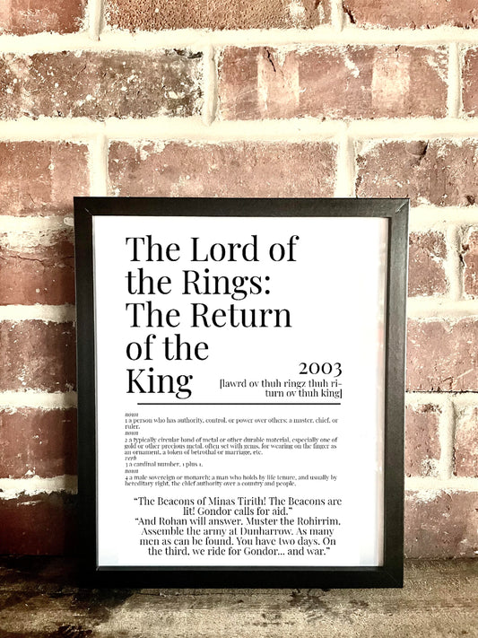 Lord of the Rings: The Return of the King 2003 Movie Quote Dictionary Prints