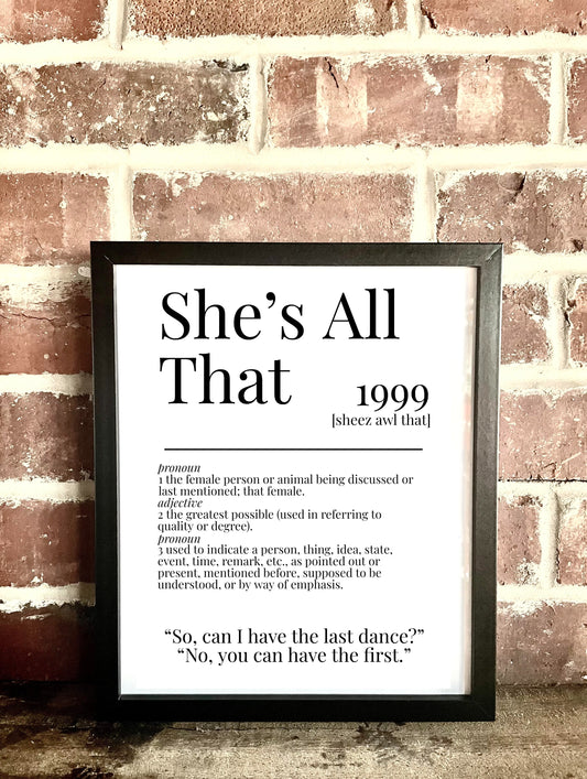She's All That 1999 Movie Quote Dictionary Prints