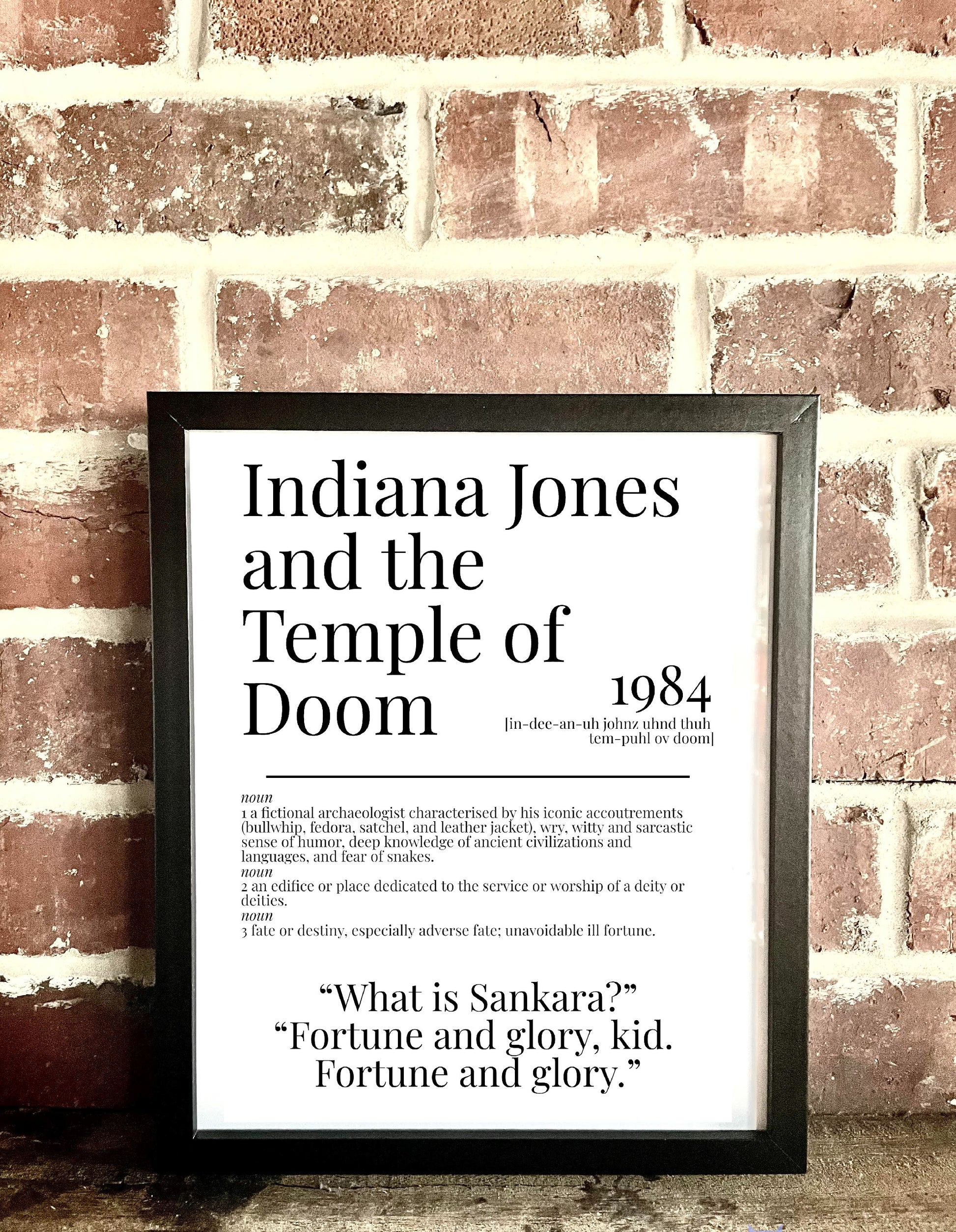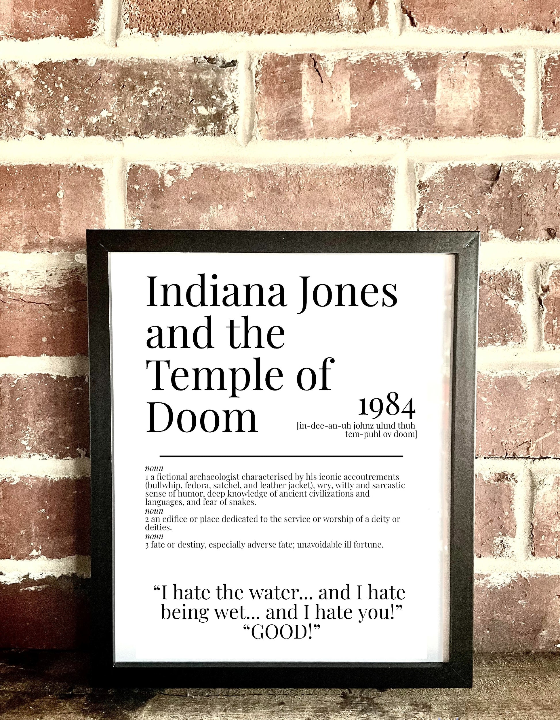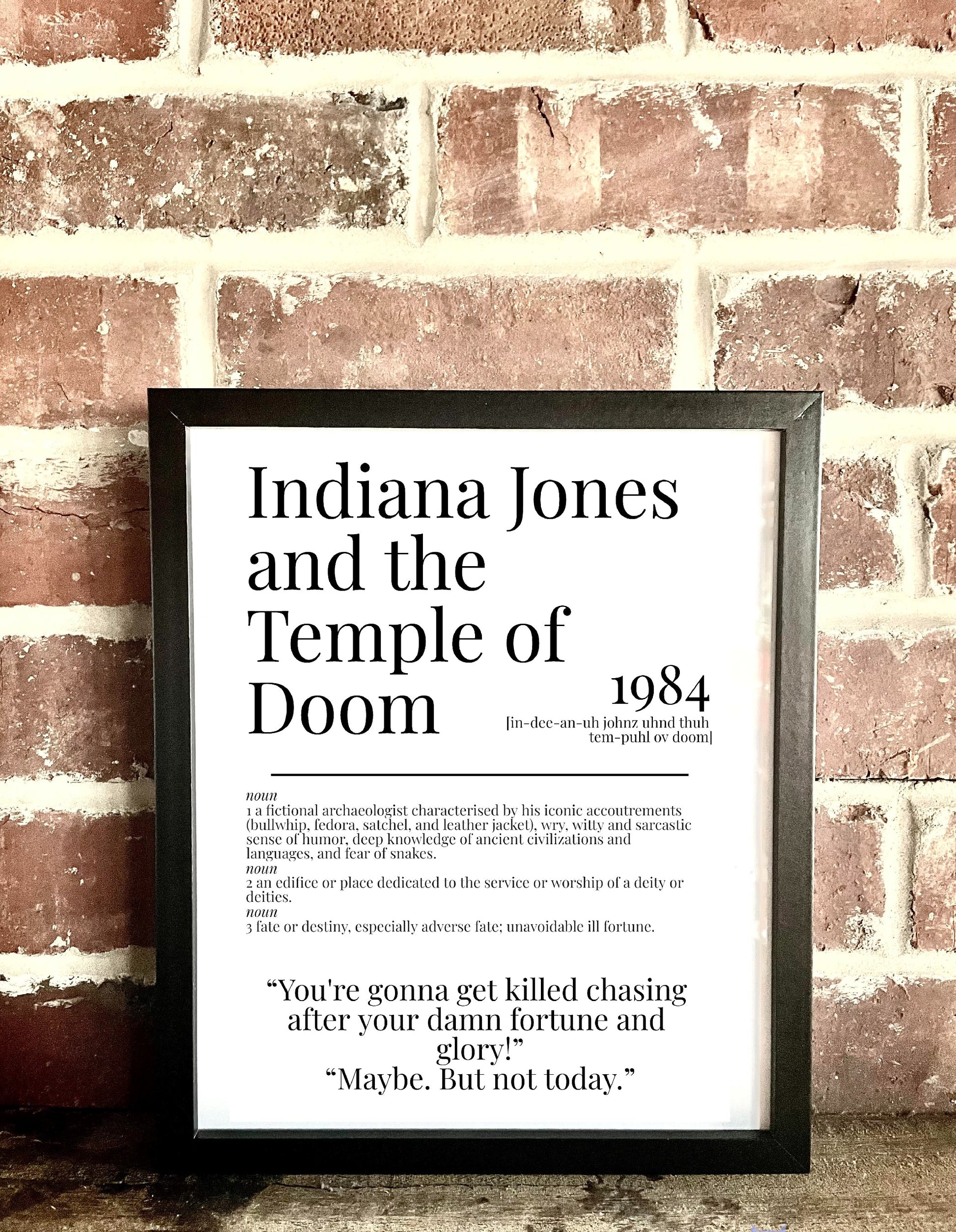 Indiana Jones and the Temple of Doom 1984 dictionary description movie quote vintage print features the following quote options: